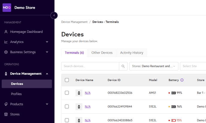 Go to the NOQ Backend Portal and select Device Management > Devices. -