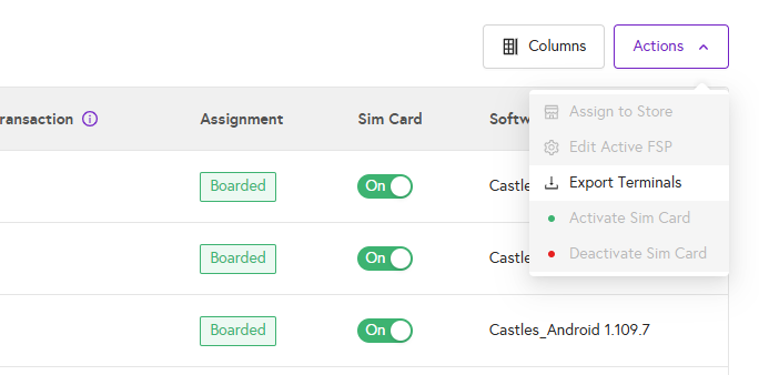 - Select either the Terminals tab or the Other Devices tab, depending on the type of devices you want to export.