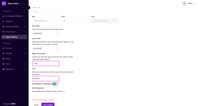 - You're able to set the reports occurrence to 'Daily' or 'Weekly'.