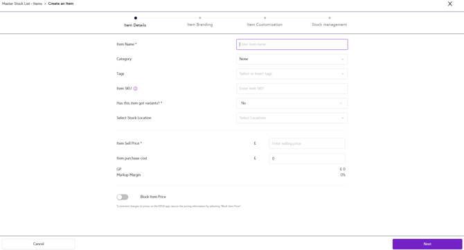 - Block Item Price: Toggle this on to lock the price in the EPOS app.