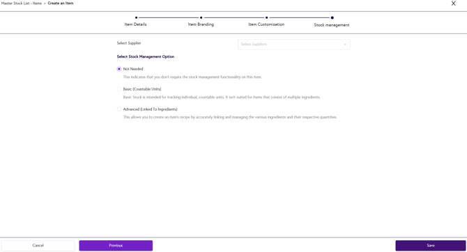- Advanced (Linked to Ingredients): For items that require recipes with multiple ingredients and quantities.
