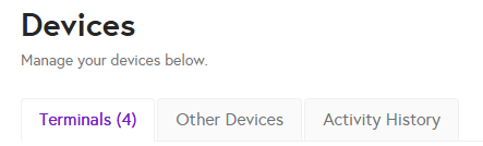 The 'Devices' section within the backend portal allows you to view, configure and reassign your terminals.