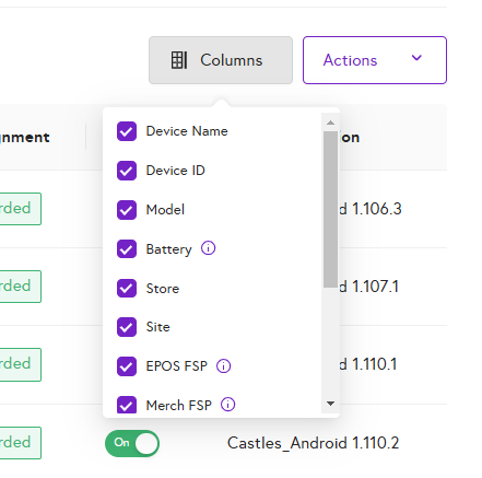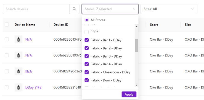 - Filter: Filter devices by Store and Site allocation
