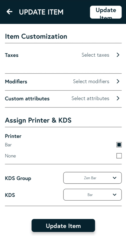 If you need to edit an item beyond just it's name and price, such as adding modifier groups or changing printer/KDS assignment, you must make these changes via the Item List view.