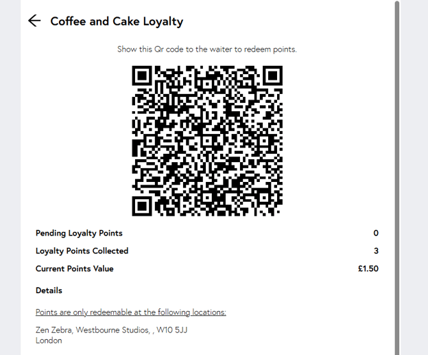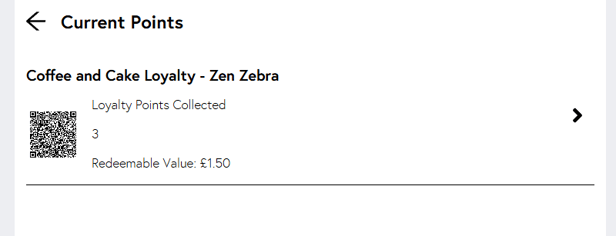 - Clicking on My Current points will show how many points they have collected and a redeemable QR code.