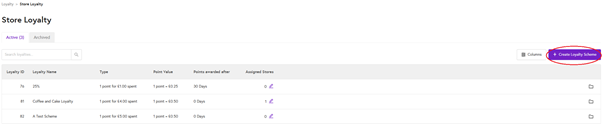 - Select Store Loyalty and click + Create Loyalty Scheme.