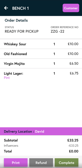 - Click Complete to mark the order as fulfilled or Print to print the order.