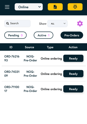 This guide explains how to manage online orders in the NOQ EPOS app, including processing pending orders, managing active and pre-ordered items.