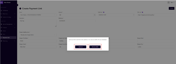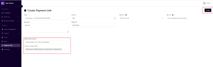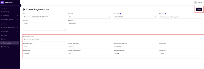 - Store: The store where the payment link amount will be reported. You can create a new store within the store profile to separate these payments.