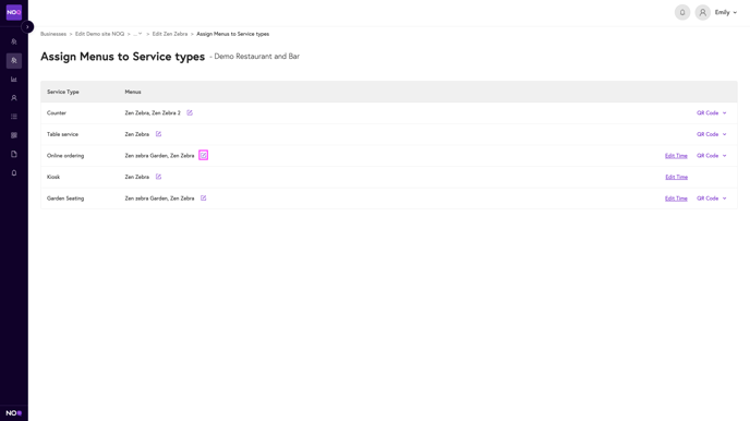- Select Assign Menus, select the edit button on the end of the menu name.