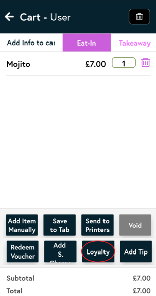 - Press the Loyalty button (if not visible, scroll left on the buttons).
