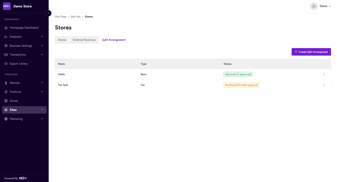- Now this has been completed you will need to wait for a NOQ admin to approve your changes. On your split arrangement tab, this will show as 'Pending NOQ team approval' or 'Approved'.