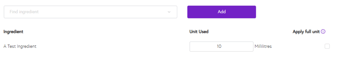- You can opt to use 'Apply Full Unit' to use the full unit you set at ingredient level