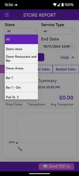 - Use the Store dropdown to select the relevant store, or view All Stores if needed.
